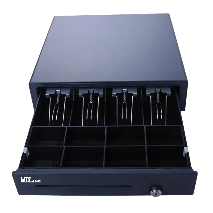 Le Tiroir Caisse WDLink WD0408 Noir est conçu pour offrir une gestion pratique et sécurisée des transactions en espèces. Il dispose de 4 compartiments pour billets et 8 pour pièces, avec une serrure à 3 positions (automatique, manuelle, verrouillage). Son interface RJ11 permet une connexion facile aux systèmes de caisse, et son design robuste en acier inoxydable garantit une longue durabilité. Idéal pour les commerces, restaurants et hôtels.